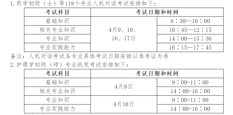 七、护理学初级(师)专业采用纸笔作答方式进行考试,具体安排如下: