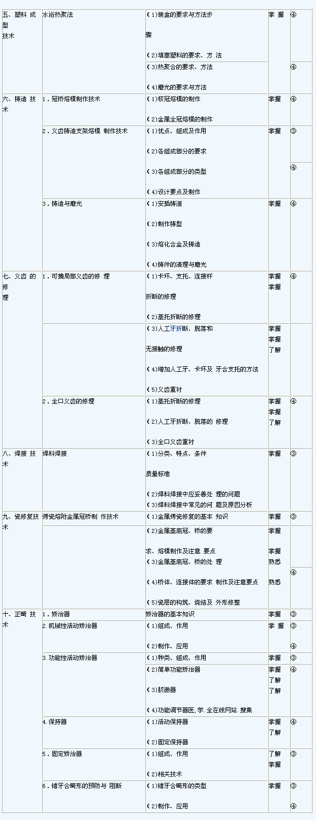 2014年口腔医学技术初级(士)考试大纲-专业知识与专业实践能力