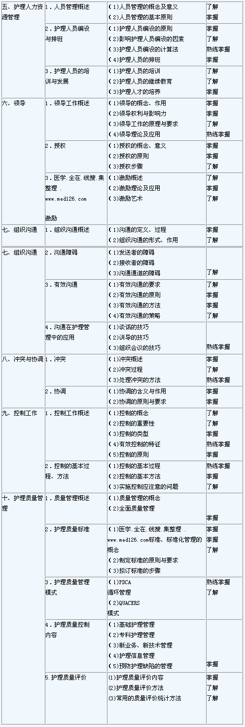 2014年社区主管护师中级师考试大纲-护理管理学(相关专业知识) :