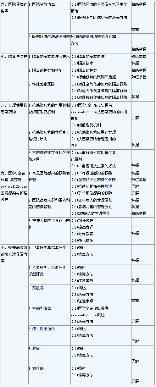 2014年社区主管护师中级师考试大纲-医院感染护理学(相关专业知识):
