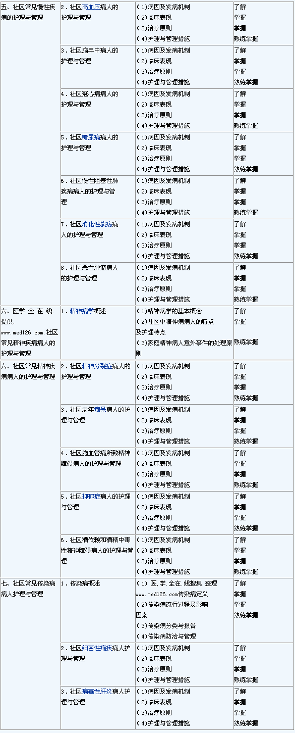2014年社区主管护师中级师考试大纲-专业知识和专业实践能力: