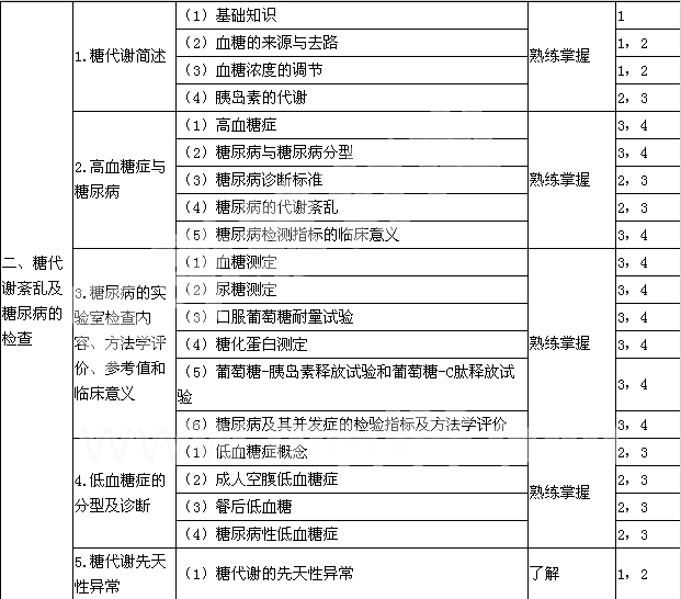 | (2)糖代谢异常的检查 | 了解 | 2 | ||