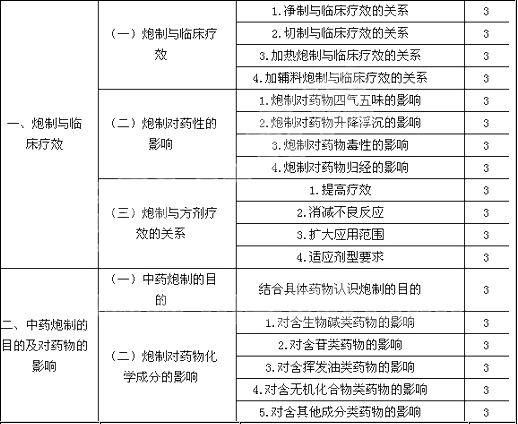 | 六、饮片切制 | (一)饮片切制的目的 | 结合具体药物理解目的 | 3 | |