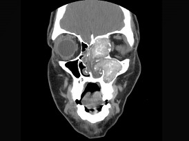 15.17岁男性,左侧上睑下垂,CT检查如图所示,请选择正确的描述或诊断 ( )![]() |