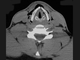 11.27岁男性,开车外出在高速行驶时翻车,呼吸困难,喉部肿胀,CT检查如图所示,请选择正确的描述或诊断 ( )![]() ![]() ![]() ![]() |
