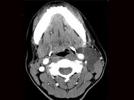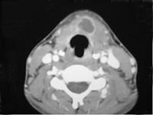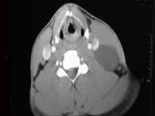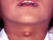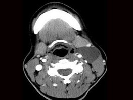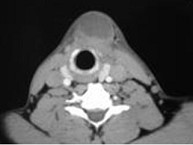 | 八岁患者,男性,因颈前正中包块6年入院,查体:颈前正中舌骨下方可触及一圆形包块,囊性,无压痛,随吞咽上下活动。 |