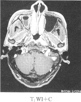 患者男性,39岁,因耳鸣,听力下降来院,影像学检查如图所示![]() ![]() ![]() |