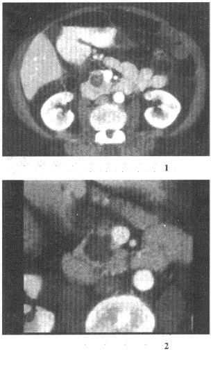 女,57岁,上腹部隐痛半年余,CT检查如图![]() |