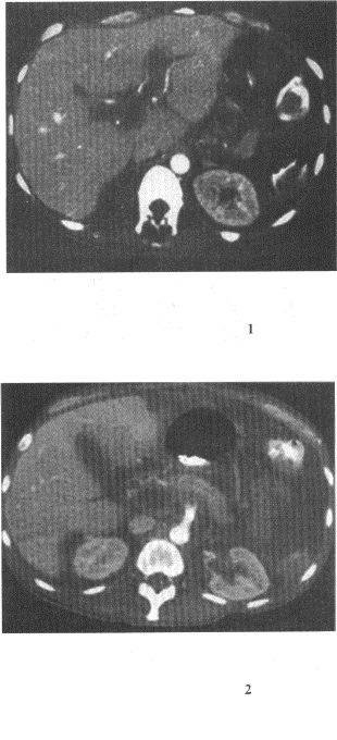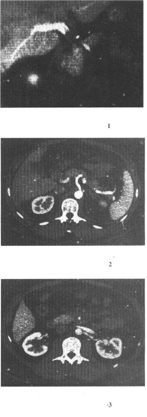 4.男,46岁,脾脏术后3天,右上腹痛,CT扫描如图,最可能的诊断是![]() |
