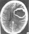 | 正确答案:C 解题思路:环形强化,环内低密度,明显占位效应,考虑脑脓肿。 |
