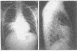 2.患者行胸片正侧位检查,胸片图像表现如下,你认为该患者应首先考虑哪些疾病