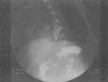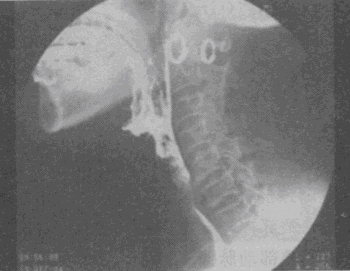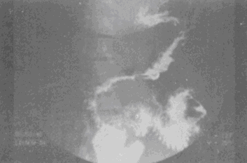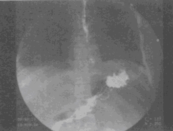 正确答案:C解题思路:食管上段有充盈缺损表现,管腔狭窄,结合病史考虑食管癌可能。