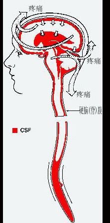 2.图中所示硬脊膜穿破后的头痛的发生原理,请问其发生率约为 ( )![]() |