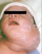 3.患儿,男性,半岁。出生后1个月发现左颊部膨隆,渐长大,低头时明显。检查外观如图。对于他目前的处理最不恰当的是 ( )![]() |
