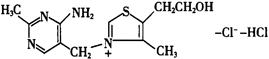 | 3.氯化4-甲基-3-[(2-甲基-4-氨基-5-嘧啶基)甲基]-5-(2-羟基乙基)噻唑盐酸盐是( ) |