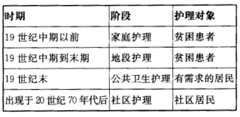 | 1.出现于19世纪中期到末期,主要护理对象是贫困的人群,从事者多为志愿者,此期为 | |