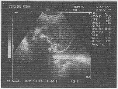 2.女,29岁,停经28周,产前超声检查如图,最可能的诊断为![]() |