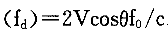 为振动源发生的振动频率,θ为振动源发出的振动传播方向与接收体运动方向之间的夹角,c为振动源发出的振动在介质中的传播速度,所以多普勒频移与以上各物理量有关,而与探头输出功率无关。