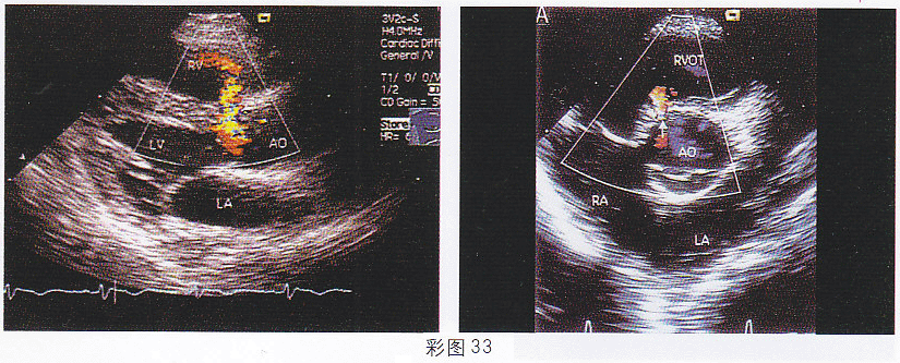 3.患儿,1岁,男,体检发现胸骨左缘全收缩期杂音,超声检查如图(彩图33)所示。该图所示的室间隔缺损属于哪型![]() |
