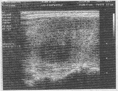 4.患者低热,咽喉肿痛1周。发现甲状腺肿大,左侧局部压痛,结合超声声像图,最可能的诊断是