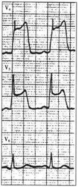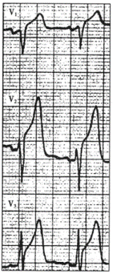 3.患者男性,59岁,高血压病史4年余,近1月活动后有胸骨后闷痛感,休息可缓解。今因情绪激动又感胸骨后疼痛,昕诊心率为120次/分,心电图检查如下图所示,应考虑为![]() ![]() |