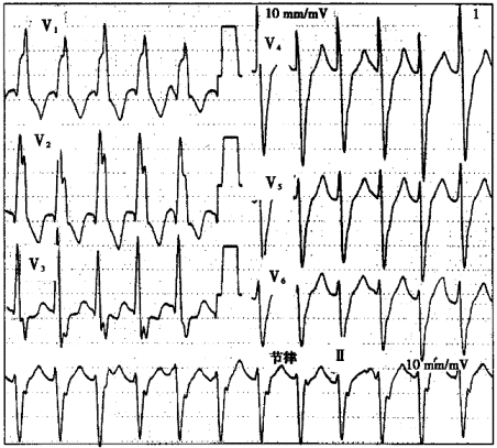 | 6.图中短阵宽QRS波心动过速应诊断为 |