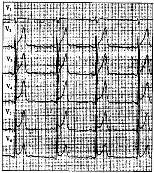 4.患者男性,26岁,无发热、胸痛及晕厥病史,体检查心电图如下图所示,结合患者的病史,最可能的诊断是![]() ![]() |