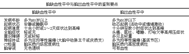 正确答案:B 解题思路:试题难度:中,本题考查目的是综合临床资料和CT图像作出脑血管病的诊断。本病例为急性起病的脑血管疾病。脑血管病分为缺血性卒中和出血性卒中。脑血栓形成、短暂脑缺血发作、脑栓塞均为缺血性卒中范畴;高血压性脑出血为出血性卒中;根据脑缺血性卒中和脑出血性卒中的鉴别诊断表(下表),可以得出B,高血压性脑出血为正确答案。脑转移癌起病较慢,而且CT的病灶周围有大片水肿,为迷惑答案。![]() |