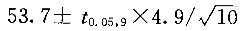 | 某地10名20岁女子身高均数为157.3cm,标准差为4.9cm;体重均数为53.7kg,标准差为4.9kg。 |