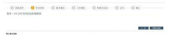 大家进入选择报考界面后依次完成:选择报考、考试须知、基本情况、工作情况、教育及培训、证书、确认这7个步骤,网上报名就此结束。