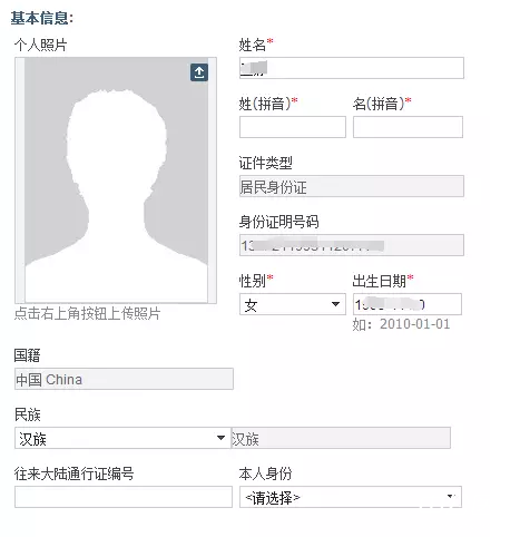 六、逐一上传个人照片、填写姓名、身份证号、通讯地址及其他个人信息资料。