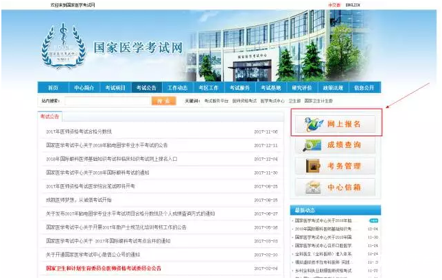 步骤1:考生登陆国家医学考试网,点击“网上报名”,进入报名系统。