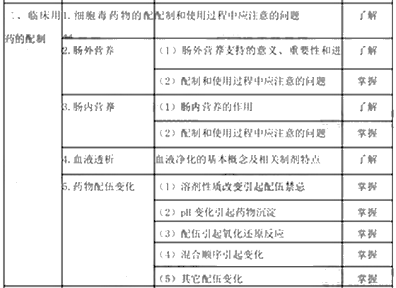 | (4)门诊、急诊、病房调剂的特性与差异 | 掌握 | ||