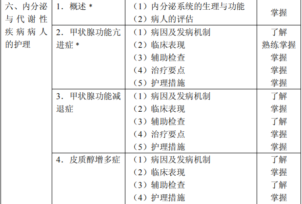 (1)病因及发病机制 (2)临床表现 (3)治疗要点 (4)护理措施 |