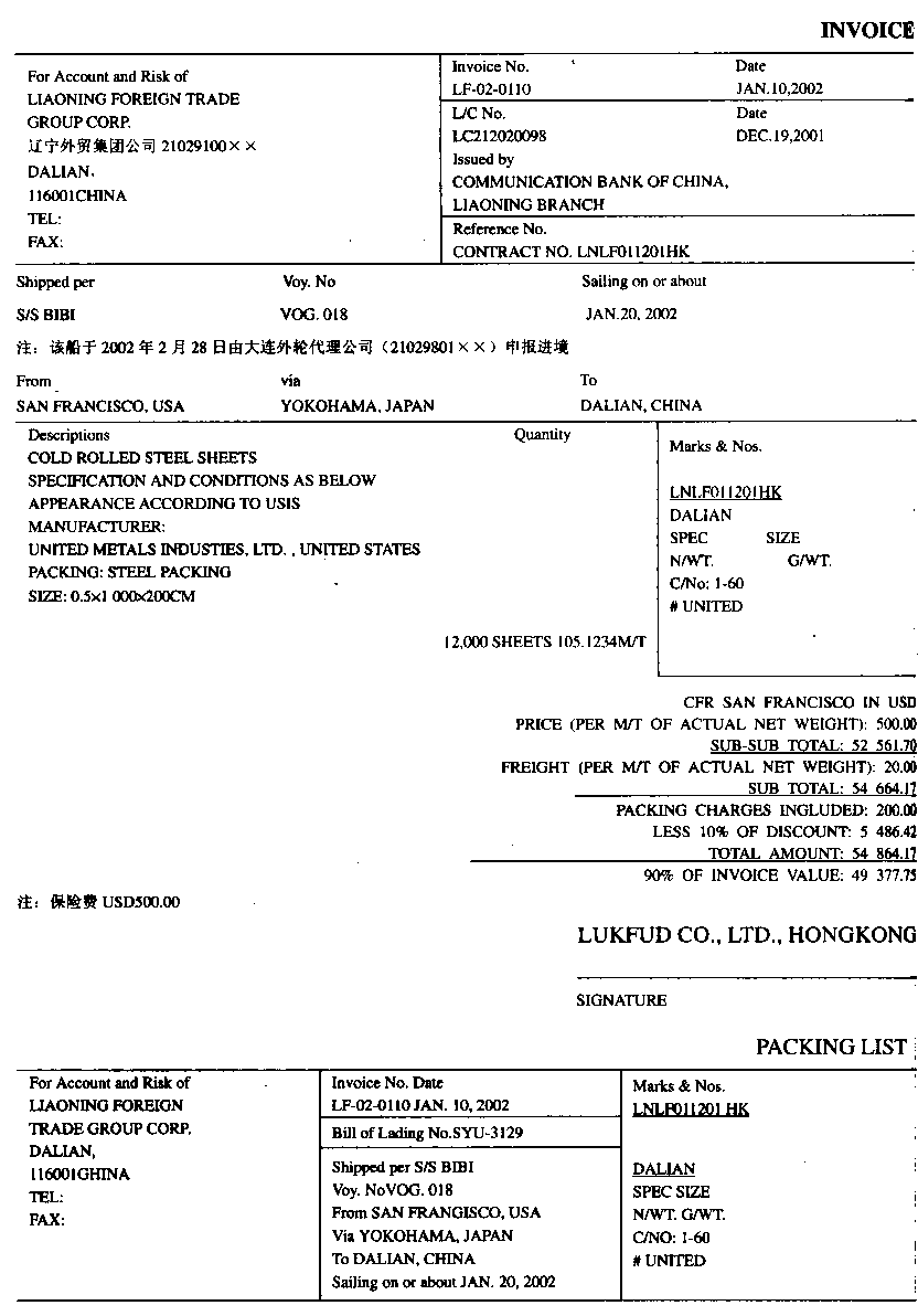 | 正确答案:I Q R S T 解题思路:(I):运抵国(地区)填报错误。运抵国(地区)指出口货物直接运抵的国家(地区)。IN-VOICE显示,目的地为HONGKONG,因此应填报香港。(Q):数量及单位填写错误。应分四项分别填写。(R):最终目的国(地区)填报错误。必须写已知的出口货物的最终实际消费、使用或进一步加工制造的国家(地区)。(S):单价填写错误。本题中共有4种不同型号的商品,每种商品的单价也不一样,从任何角度讲,都没有1.06的单价。(T):征免填报错误。规范的填法应为"照章征税"。 |