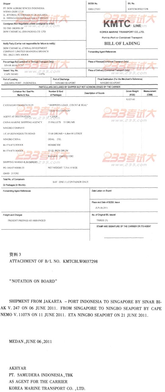 2.“运输工具名称”栏:
