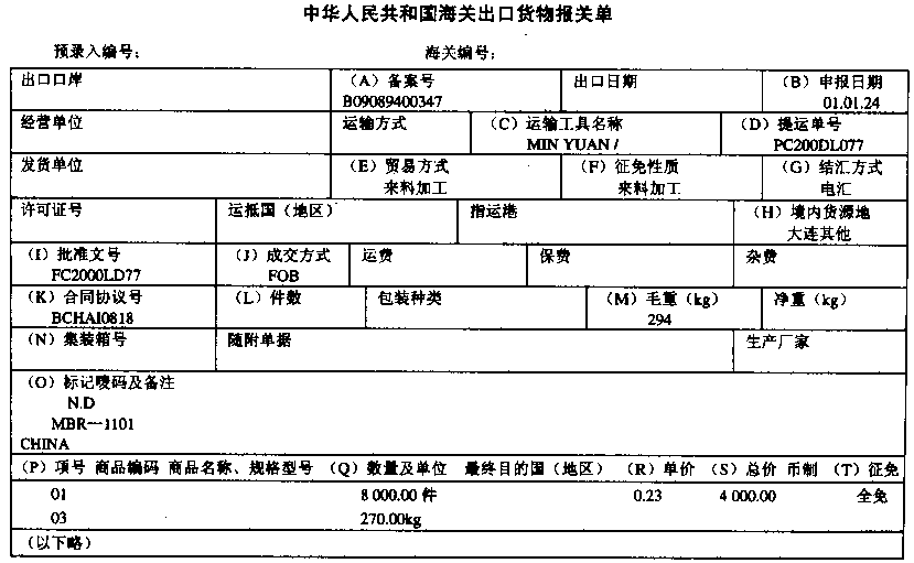 ![]() 深圳光明眼镜公司(440281309)委托深圳圳旺国际贸易公司(4402911616)进口一批镜框材料,装载该货物的运输工具于2004年9月13日申报进境,次日由深圳巨龙报关公司向深圳海关申报。 ![]() |
