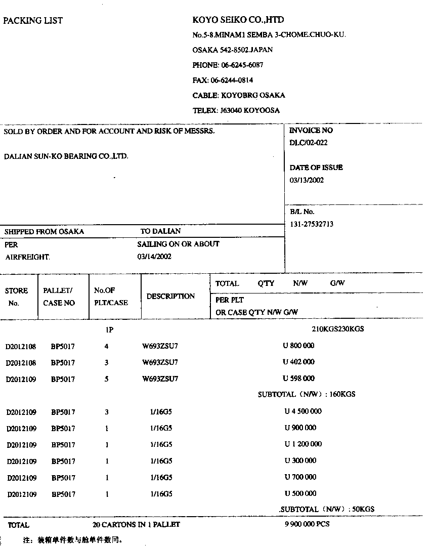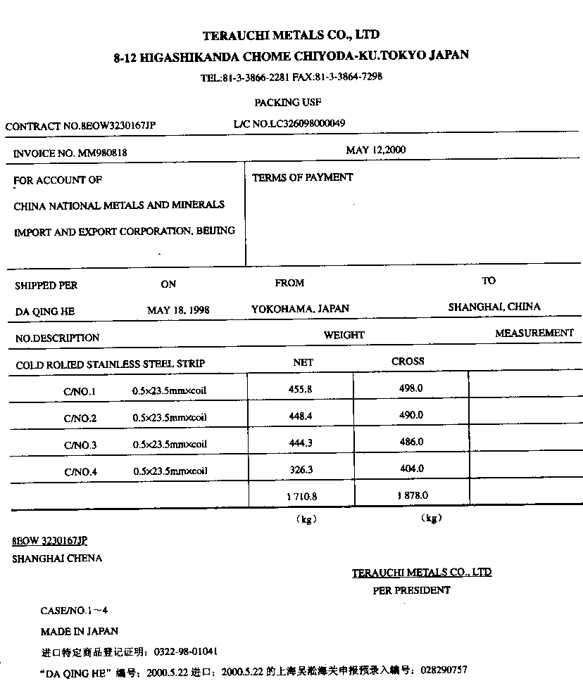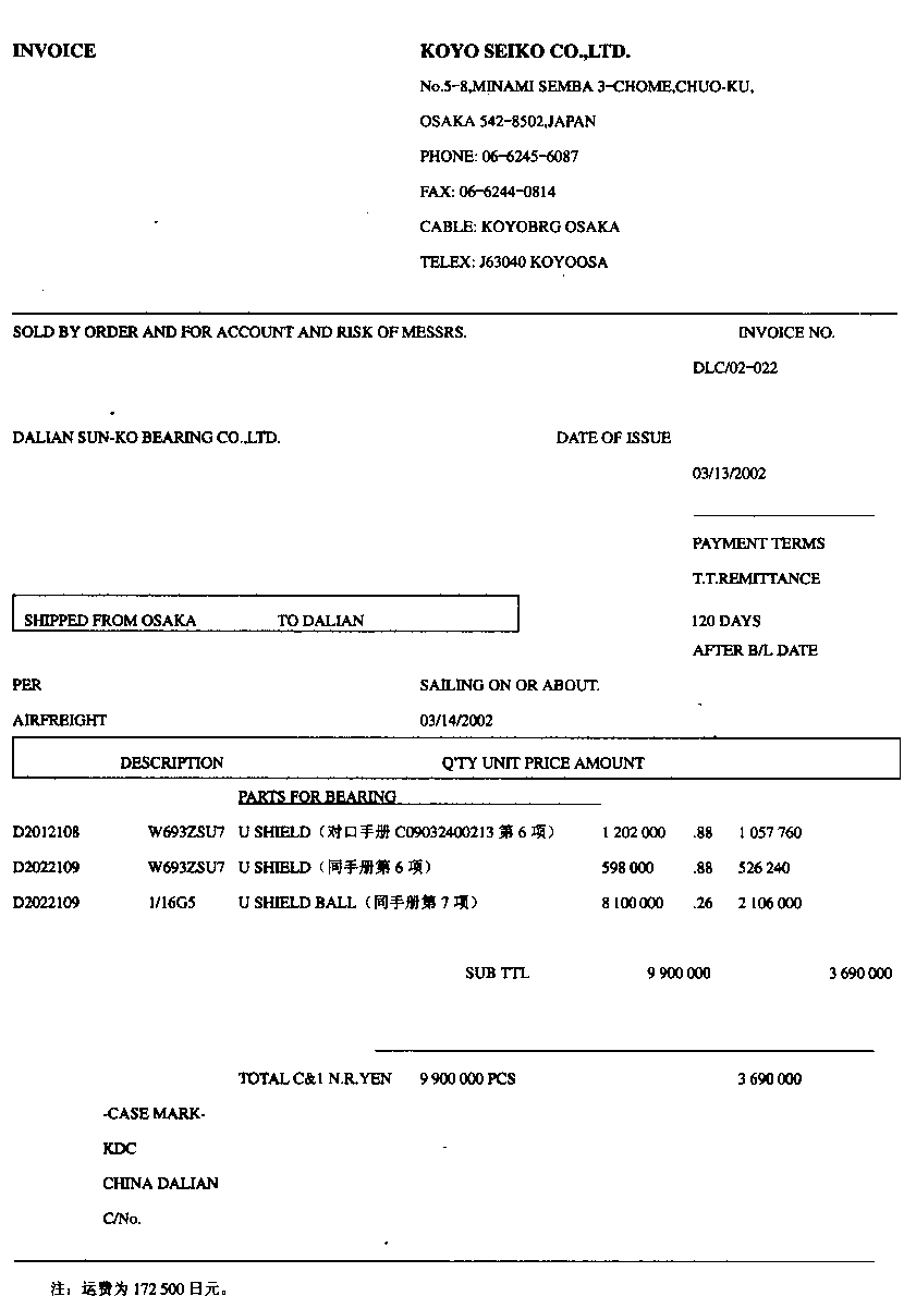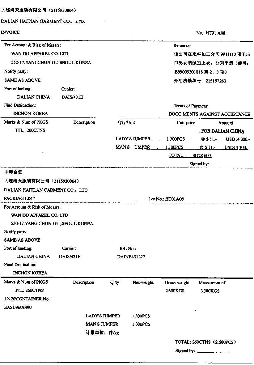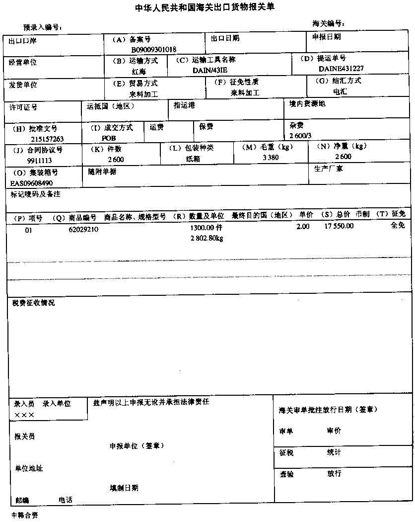| 正确答案:G、K、P、R、S 解题思路:G.应为承兑交单K.应为260P.应为1 2 2 3从上到下R.应为第一计量单位件在第一行千克为第二计量单位在第二行S.应为14 300 14 300 |
