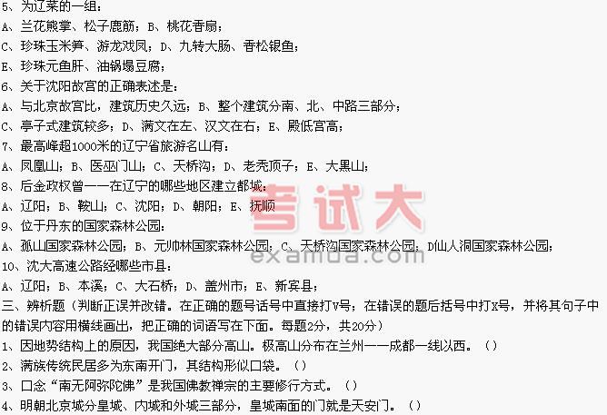 2003年甘肃省导游人员资格考试导游业务真题试题