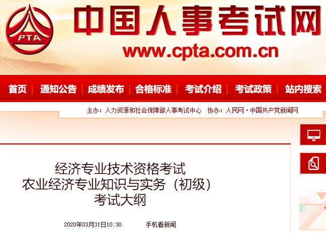 经济专业技术资格考试农业经济专业知识与实务(初级)考试大纲