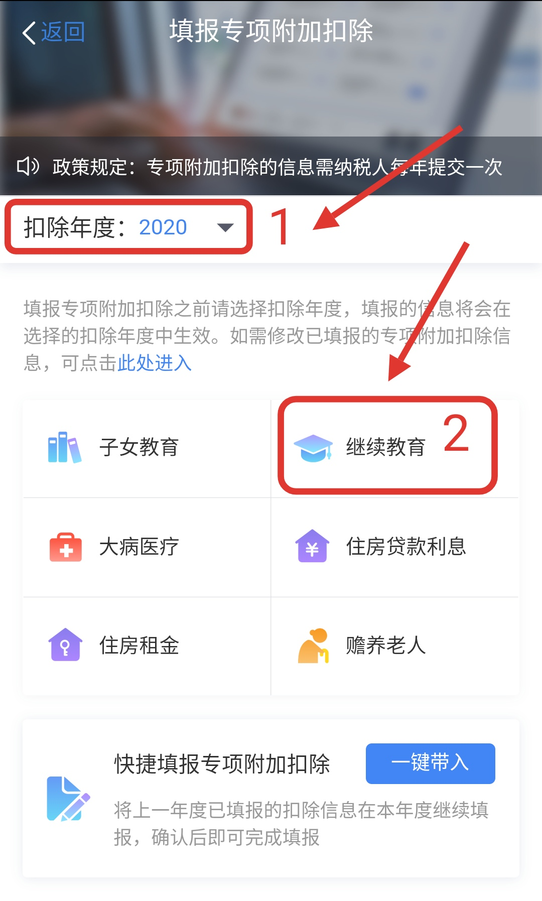 另外,2019年12月31日,国家税务总局发布《关于办理2019年度个人所得税综合所得汇算清缴事项的公告》,提到纳税人在2019年度未申报享受“继续教育”专项附加扣除的,可以在年度汇算期间(2020年3月1日-6月30日)办理扣除。