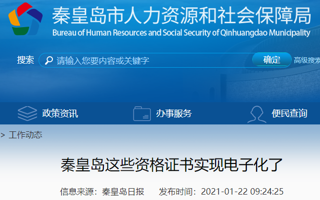 推出电子证书,真正实现了专业技术资格考试所有业务网上闭环办理,考生从网上报名、网上审核、网上缴费到网上办证,免去了所有现场办事环节,方便了办事群众。目前市人社局网站和“秦皇岛人社”APP已经升级了相关功能,可随时发放电子证书。
