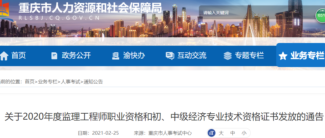 关于2020年度监理工程师职业资格和初、中级经济专业技术资格证书发放的通告