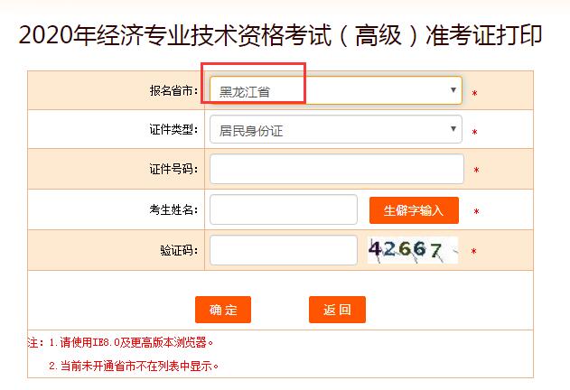 中国人事考试网2020年黑龙江高级经济师准考证打印入口提前开通!