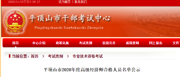 根据《司法部关于印发开展证明事项告知承诺制试点工作方案的通知》(司发通〔2019〕54号 )、《人力资源社会保障部办公厅关于印发<人力资源社会保障系统开展证明事项告知承诺制试点工作实施方案>的通知》(人社厅发〔2019〕71号)及河南省人力资源和社会保障厅《关于专业技术人员职业资格考试资格核查和证书发放管理有关具体问题的通知》(豫人社函〔2020〕40号)、《关于做好2020年度经济专业技术资格考试考务工作的通知》(豫人社函〔2020〕109号)的规定和要求,现将平顶山市2020年度高级经济专业技术资格考试成绩合格人员予以公示,共37人(名单附后)。
