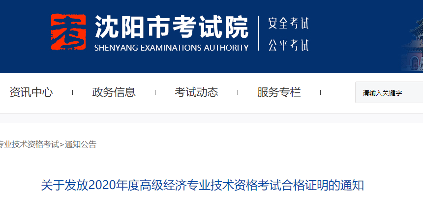 2020年沈阳市高级经济师考试合格证明发放通知(邮寄或现场领取)