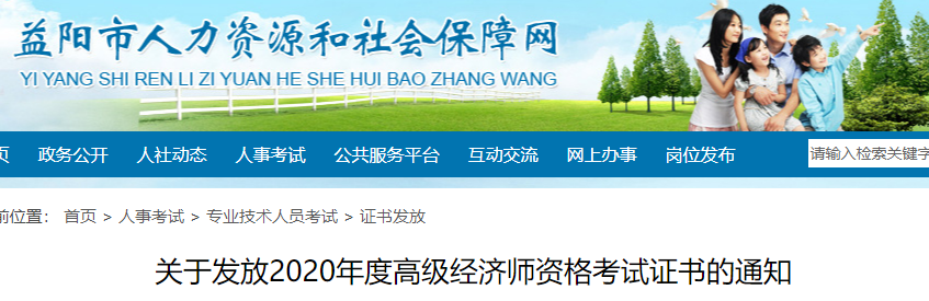 2020年度高级经济师资格考试证书(名单见附件1)、将于2020年12月15日起(上午8:30-12:00,下午14:00-17:30)开始发放,请考试成绩合格且报名点选择“益阳考区”的考生携带本人身份证原件前往到益阳市人力资源和社会保障局15楼1516室(地点:世纪大厦,益阳大道和龙洲路交汇处;电话:0737-4226090)领取。成绩合格的考生请在规定时间内领取高级经济师考试合格证书。