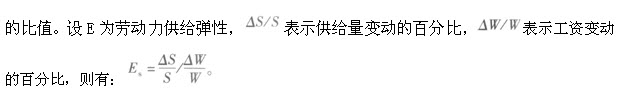 【解析】劳动力供给量变动对工资率变动的反应程度被定义为劳动力供给的工资弹性,简称劳动力供给弹性。其计算公式是劳动力供给量变动的百分比与工资率变动的百分比