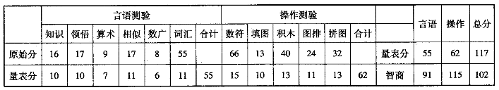 2.知识、领悟和填图的分测验成绩均为10,是常模的平均水平。