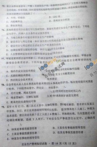 2004年注册安全工程师考试《安全生产管理知识》 真题